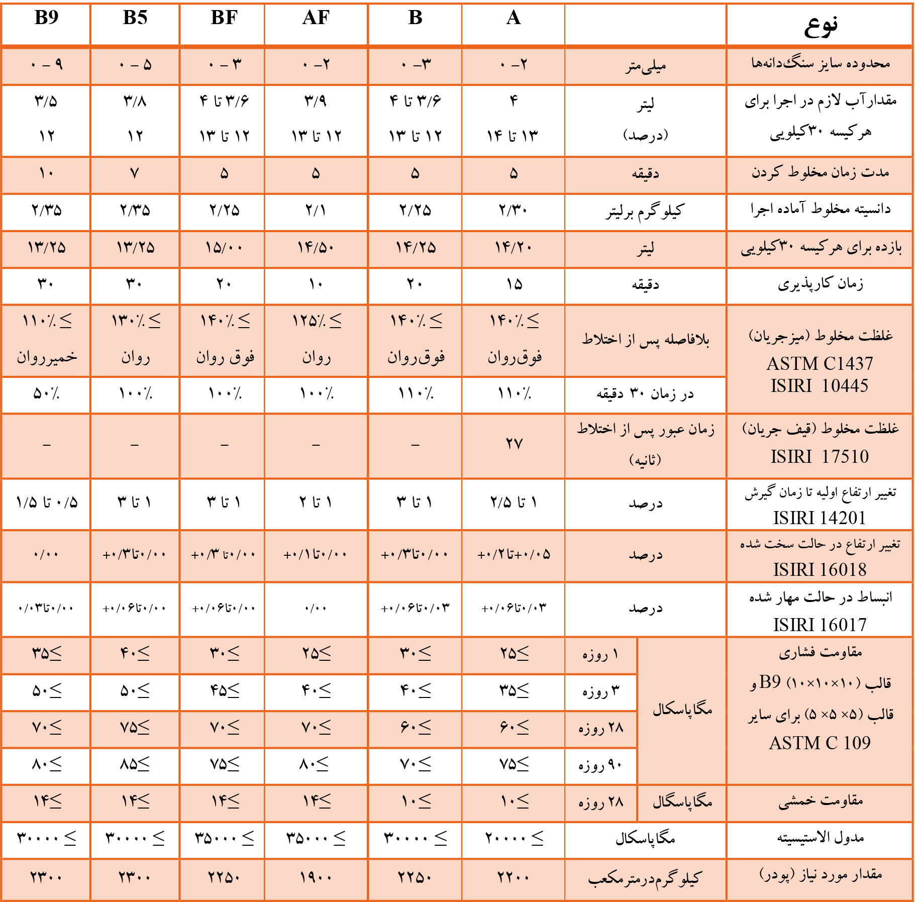 گروت نوع B5 براي گروت ريزي محل هاي با ابعاد زياد (بيش از 2 متر مربع) و فاصله بستر فلزي تا سطح بتن بيش از 100 ميليمتر،مصرف ميشود.