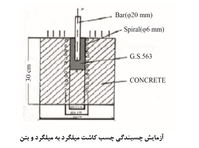G.S.563-E و563-C G.S. ملاتها يا چسبهای مخصوص كاشت میلگرد هستند كه در آنها با استفاده از سيمان جبرانكننده انقباض و يا رزينهاي مناسب كه پس از خشكشدن جمعشدگي ندارند اتصال بسيار محكمي بين میلگرد و سازهی بتني پايه فراهم ميآيد بهطوری كه تحت فشارهاي پيچشي يا تنشهاي كششي، میلگرد كاشته شده از پايه جدا و يا لق نميشود و همچون میلگرد شبكه داخلی بتن از اتصال كافي براي ادامه عضو بتني برخوردار است. اتصال و گیرداری میلگردی که با این محصولات کاشتهشوند درحدی است که هنگام آزمایش، جدا شدگی در بتن اتفاق میافتد نه در محل اتصال با چسب. آزمون مربوطه مطابق طرح زیر شامل بیرون کشیدن میلگرد ساده یا آجدار از کیوب بتنی کاشته شده در آن میباشد.